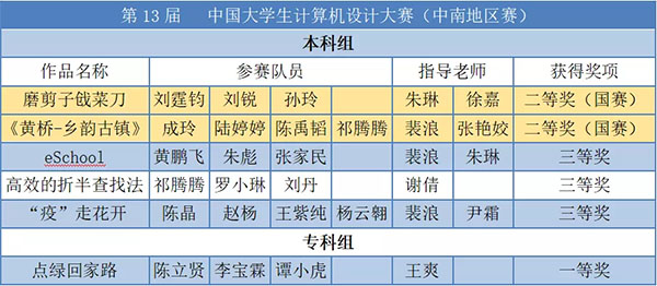 近日,第13届中国大学生计算机设计大赛中南地区赛落下帷幕,龙8-long8(中国)唯一官方网站龙8-long8(中国)唯一官方网站共有6组作品获得省赛奖项,其中本科组二等奖2项(推选至国赛)、三等奖3项,专科组一等奖1项。