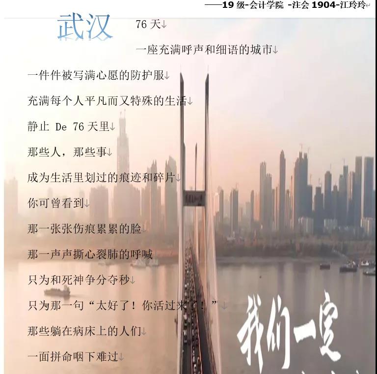 在这场没有硝烟的战争中,一批又一批的战疫英雄涌现,应是水中月,波定还自圆,没有人生来就是战士,但在灾难面前,我们可以乐观面对,我们甚至可以变得很强大。每个人生命中,都有最艰难的时候,跨过那一步就好了,我们的人生也将变得美好而辽阔。打不败我们的,只会让我们变得更强,加油,我们一起守望相助,胜利的曙光就在前方!