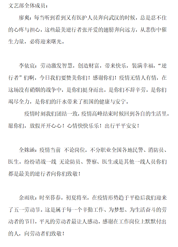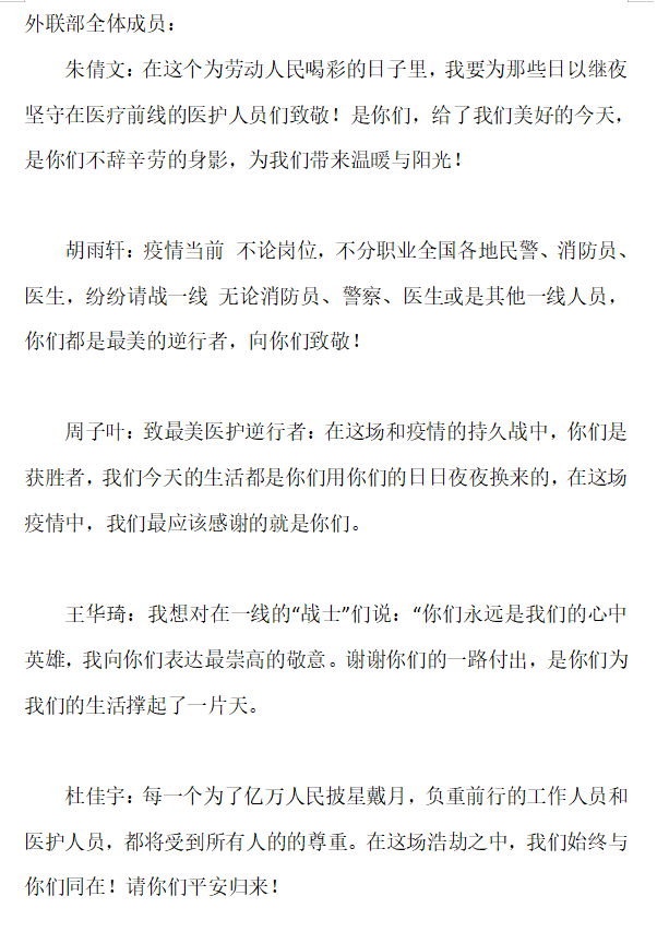 岁末年初,一场新冠肺炎疫情袭来,在这场疫情中有许多勇敢的劳动者,开始了他们的逆行出征。在五一劳动节这一天,龙8-long8(中国)唯一官方网站各位同学向最美“逆行者”们表达自己的感谢与问候!