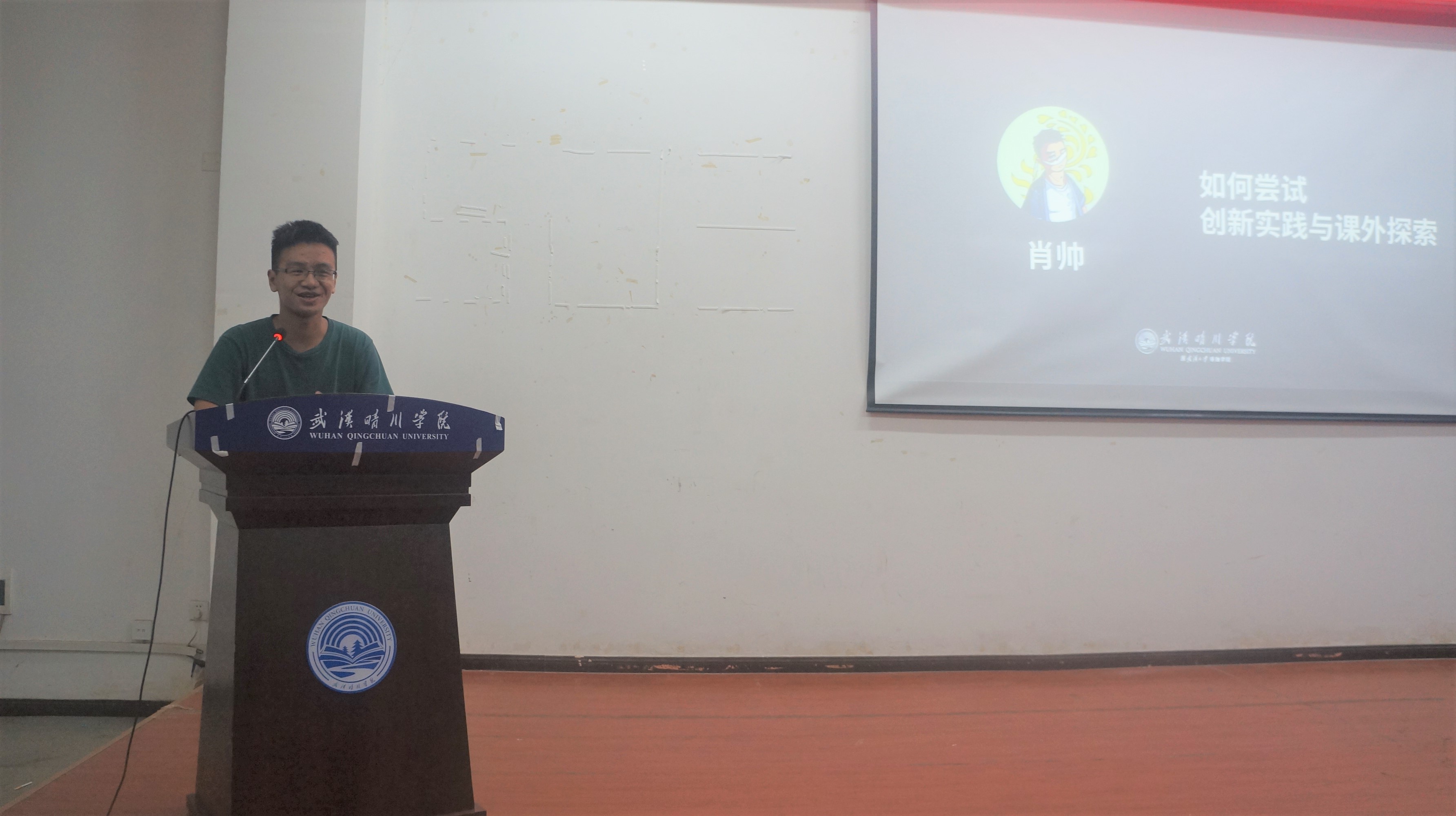 肖帅学长则是将一些创新实践和课外探索的经验分享给大家。他讲到在制作一个程序的过程中会出现很多错误和问题,经过多次更改检测,一次又一次将错误率降低,才能达到标准。他认为计算机方面的知识太多了,想要仅仅想要靠老师在课堂上讲的一些知识是远远不够的,并向大家推荐了一些学习资源网站:优达学城、中国大学MOOC、YouTube、哔哩哔哩官方网站,还向大家推荐了一些计算机专业书籍,建议同学们在感兴趣的版块里面选取书籍来拓展自己的知识面。最后,肖帅学长还向同学们分享了他的健身计划,呼吁大家一定要注意作息时间,保持身体的健康。