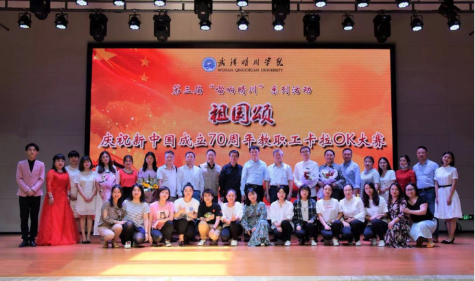 5月22日下午,我校党组织为庆祝新中国成立70周年而举办的第三届“唱响晴川”系列活动——祖国颂教职工卡拉OK大赛在晴川小剧院顺利召开。