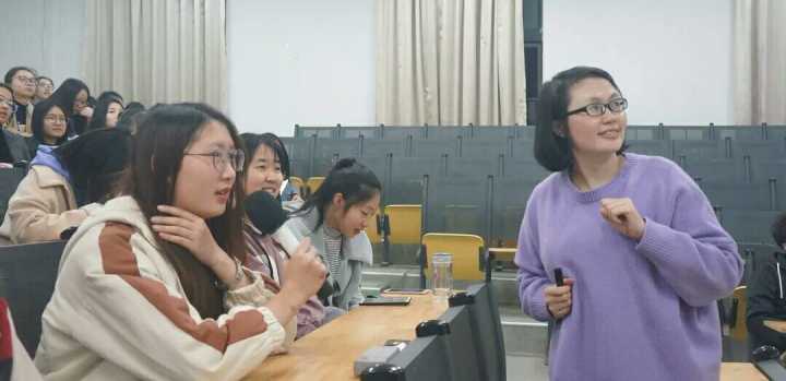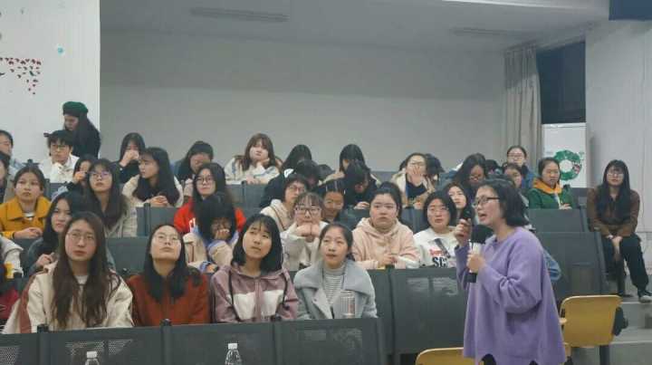 此次讲座特邀心理健康中心专职教师——胡岳老师与我院女生进行了一次深刻的恋爱交流。