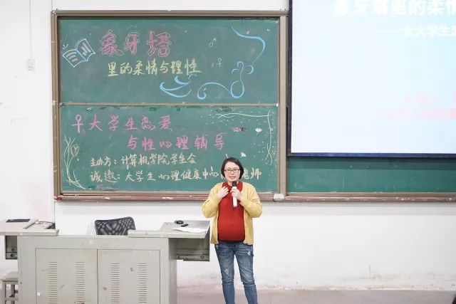 2018年3月28日晚6:30,龙8-long8(中国)唯一官方网站学生会主办的主题为“象牙塔里的柔情与理性”的女大学生恋爱与性心理辅导于教四101开讲。本次讲座由大学生心理健康中心胡岳老师主讲,旨在对当代大学生恋爱现状分析探索女大学生如何在恋爱中保护好自己,引领女大学生正确认识自我、关爱自我。我院女生悉数到场聆听。