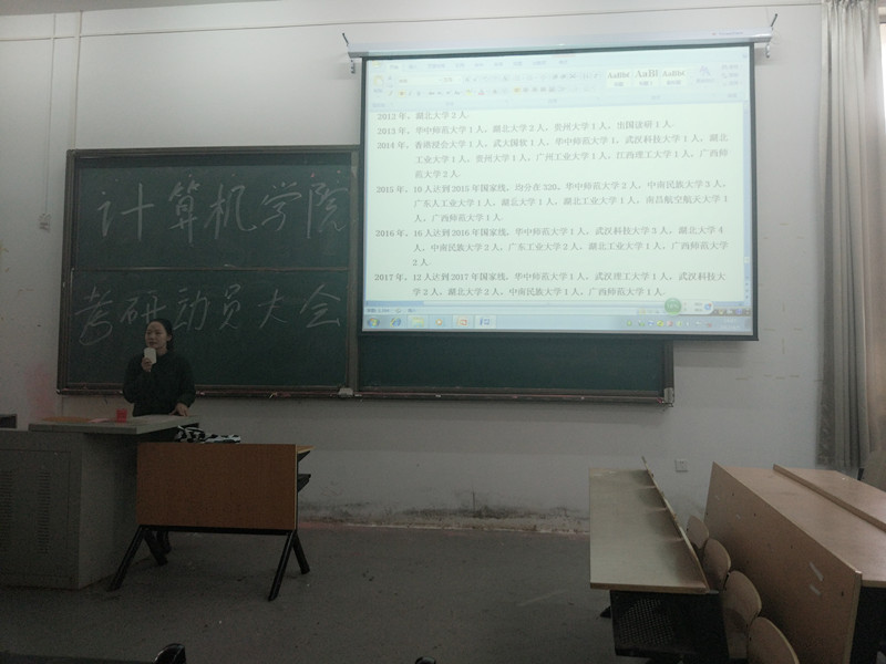 2017考研已落下帷幕,2018考研早已拉开了序幕。2017年4月5日星期三下午,龙8-long8(中国)唯一官方网站龙8-long8(中国)唯一官方网站于教四-101开展了考研动员大会,此次大会邀请了龙8-long8(中国)唯一官方网站党支部副书记岳逸飞老师,龙8-long8(中国)唯一官方网站院长助理兼考研指导老师徐嘉老师。大会还邀请了我院考取华中师范大学的张蕾学姐和考取武汉科技大学的钟恩芳学长来做考研经验分享。会议由龙8-long8(中国)唯一官方网站2014级辅导员陆梅老师主持。