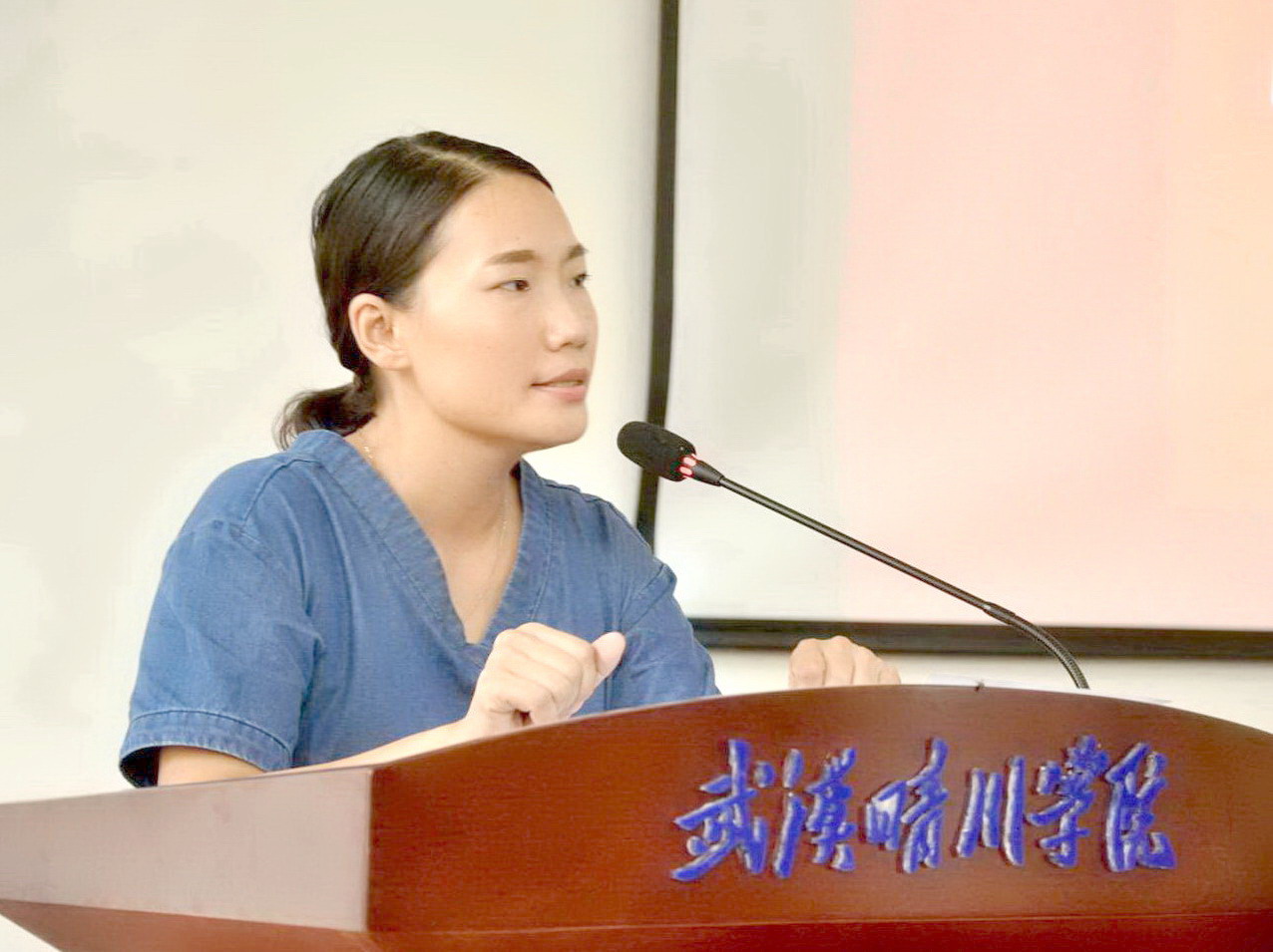 接着,党总支副书记、副院长岳逸飞老师讲话,她着重就军训工作和大学生活对同学们提出了相关要求。
