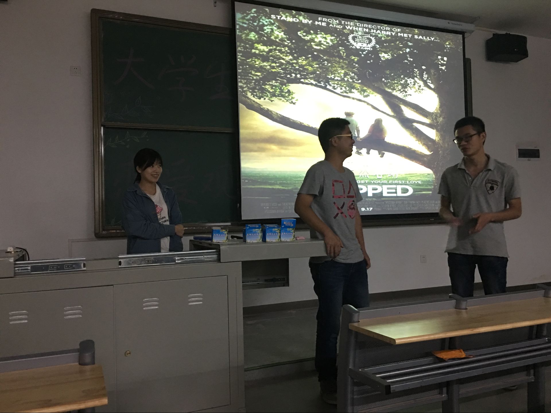 其次,请两个班的班长谈谈他们自己的大学生恋爱观以及他们对大学恋爱的看法,并且正确的引导同学们对恋爱的态度。接着让同学们各抒己见,谈谈自己对恋爱的看法。其中按照PPT的内容播放了一场电影《怦然心动》。。其中按照PPT的内容播放了一场电影《怦然心动》。