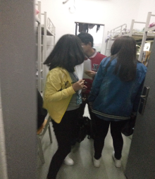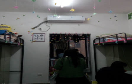 评比期间,他们从寝室卫生、室内美化、创意设计、精神面貌以及寝室安全等方面进行评分。在这个过程中,同学们积极配合,各自说着自己的寝室文化特色。与此同时,学生会干事也是严格按照评比标准进行打分并拍照做相关记录。下面简单介绍一下同学们寝室的总体情况,寝室卫生和寝室安全基本合格。室内美化和创意设计个别寝室较为突出,他们将寝室装扮成具有大自然特点的“室内桃园”,还有将屋顶挂满星辰的设计,更有纯手工自制的相框及自剪图形的装饰。。。。。。他们的寝室各有特色,设计新颖,创意独特。