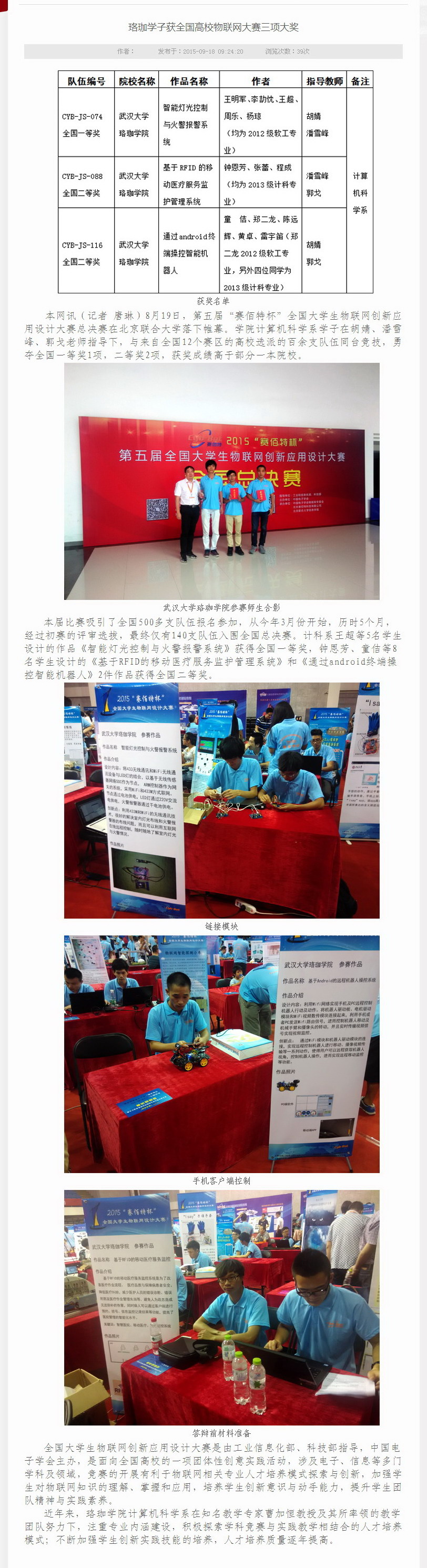珞珈学子获全国高校物联网大赛三项大奖