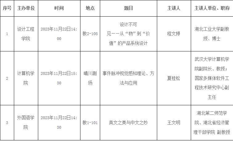2023-2024学年第一学期学术讲座安排(第12周)