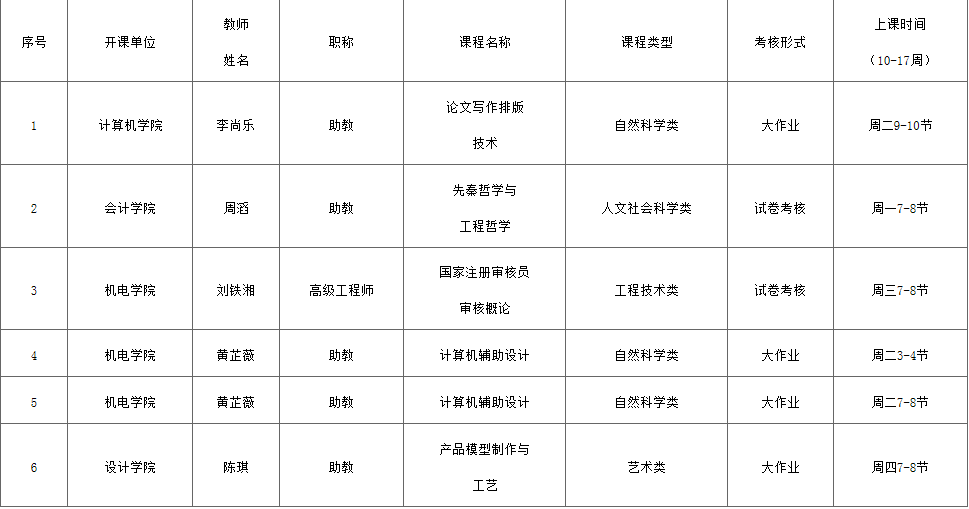 1.线下面授公选课。即有明确任课教师、上课时间与地点的课程,其开课周次为第10-17周(含课程考试时间)。线下公选课第一轮选课阶段可选课程信息见下表: