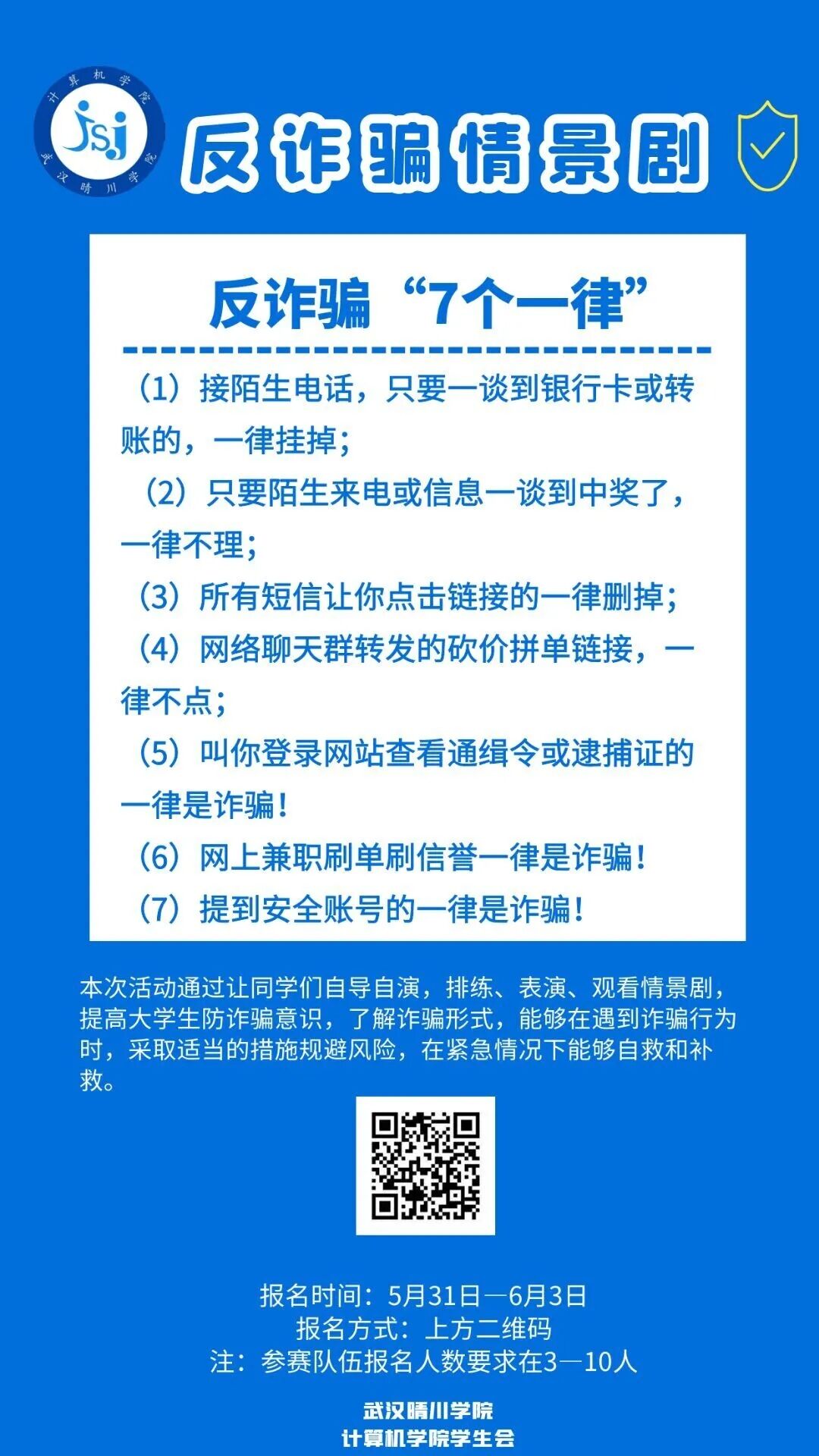 晴川龙8-long8(中国)唯一官方网站于6月初开展“反电诈情景剧大赛”、“‘青春护航·反诈同行’微电影拍摄大赛”两项赛事。